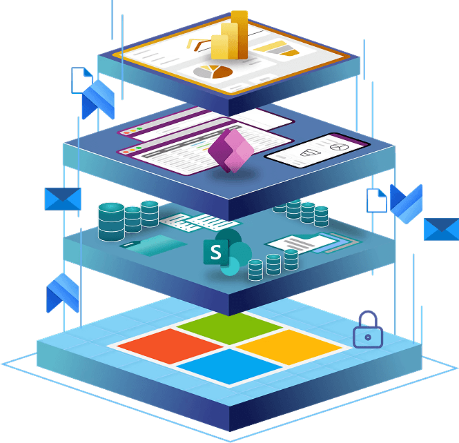 Každé řešení začíná na robustním základu Microsoft, kombinujícím SharePoint a Power Platform.